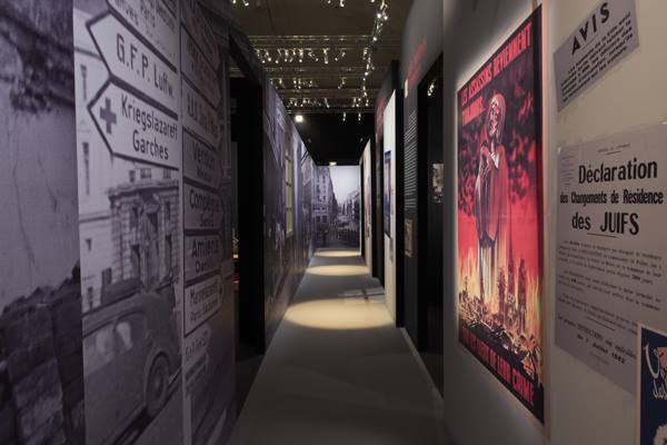 Superposant approche thématique et vision chronologique, l’exposition se présente comme un dédale sombre et oppressant qui traduit bien la menace latente, la peur, l’anxiété vécues pendant quatre ans par une population soumise à pareil régime. Délations constantes, surveillance continue, mise en place des rafles, manipulation des foules, les documents orchestrant l’administration de ce système odieux s’accumulent au fil des vitrines, preuves irréfutables de la responsabilité des institutions et du gouvernement en place.